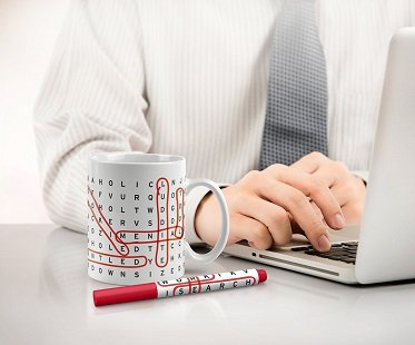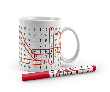 When you find yourself bored at work, take a break and challenge your brain with this word search mug! Use the included pen to find and highlight the 23 hidden words. It's a great way to look productive while you're at your desk!