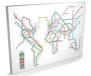 Imagine if you could travel country to country on the underground train. If it were ever possible, this world metro map could be the available routes you could take. Add a unique addition to your modern day home.
