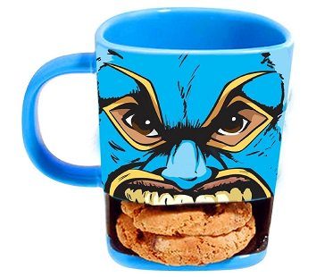 Take a break from the ring and enjoy a nice hot drink from this wrestler biscuit mug! Chuck in a couple of tasty treats and put 2 of your favorite biscuits in the pocket down below. You'll be fuelled up and ready for your next round!