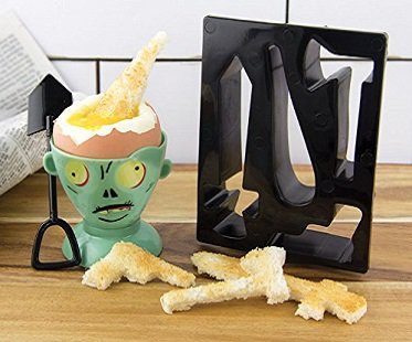Eat your way through the apocalypse and enjoy your breakfast using this zombie egg cup and toast cutter set! It adds a fun twist on the classic boiled egg and soldiers and it's great to use to encourage proper eating for children.