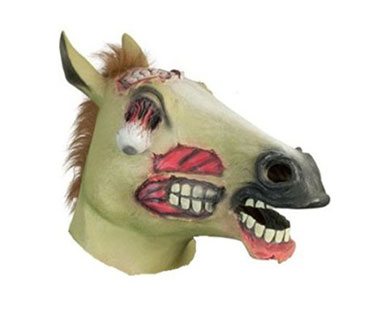 Turn heads wherever you go with this creepy zombie horse mask! It's made from latex and glows in the dark. Perfect for costume parties or when you want to prank your friends!