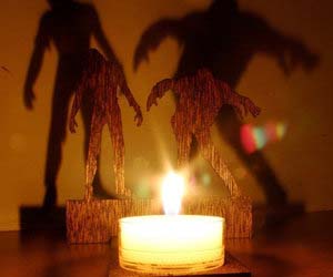 Freak people out with these zombie shadow casters. Place the casters in front of a candle and life size zombie shadows will spear on the wall! Awesome.