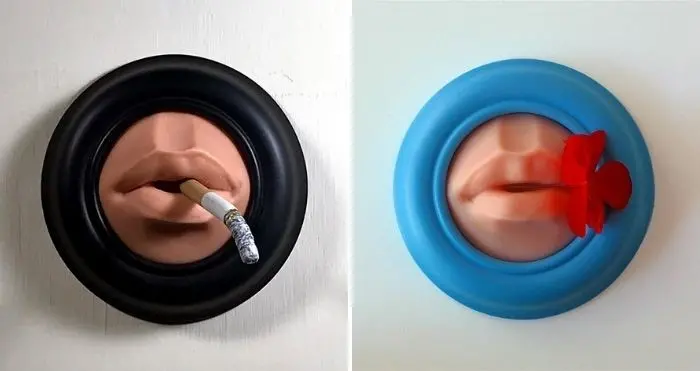 But if you have kids in the house, you might not want to encourage smoking by placing cigarettes into these decorative lips. Instead, you can place other objects such as pencil, stemmed flower, chopstick and other small objects. And the slightly opened mouth will be happy to hold it for you.