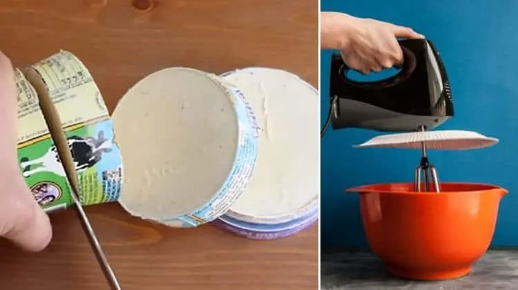 Prevent splatters when using a mixer by using a paper plate as shown in the image below!