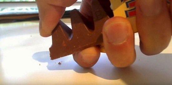 Break ‘Toblerone’ chocolate bars up into manageable pieces with ease. Simply place your thumb at the top of one of the pieces and press towards the bar. It will just snap off!