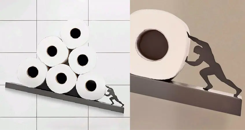 Adorn your bathroom with this Sisyphus toilet paper shelf and give a mythological ambience to your potty time. This diagonal metal shelf features a tiny figure of Sisyphus who appears to be pushing giant rolls of toilet rolls up a hill. In Greek mythology, Sisyphus was a cunning king of Ephyra known for his deceitful character and hubristic belief. Putting full confidence on his cleverness, he even tried to outsmart Zeus. As a punishment for his arrogance, Zeus ordered Hades to chain Sisyphus in the Underworld. However, Sisyphus’ sneakiness got the better of Hades and the God of the Underworld ended up being chained himself.