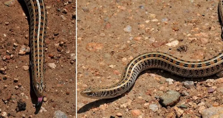 When wildlife photographer Sjoerd van Berge Henegouwen snapped some photos of a curious-looking creature in the Maasai Mara region of Kenya, he didn't exactly know what he was looking at. Interestingly, what looked like a snake was actually a Western Serpentiform Skink, which was previously thought to be extinct! Although the skink looks like a snake, it has a notched tongue and four small legs which means it's actually a lizard. Take a look at the photos of this amazing creature… what a discovery!