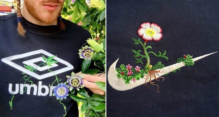 When you think of embroidery, images of older ladies sitting back in their rocking chairs passing the time come to mind. But embroidery artist James Merry has gone and done something very different with the needlework art he loves. He's taken items of clothing with sports logos on and prettied them up with gorgeous flowers. The results are fantastically unique and really brings two totally different spectrums together. Take a look!