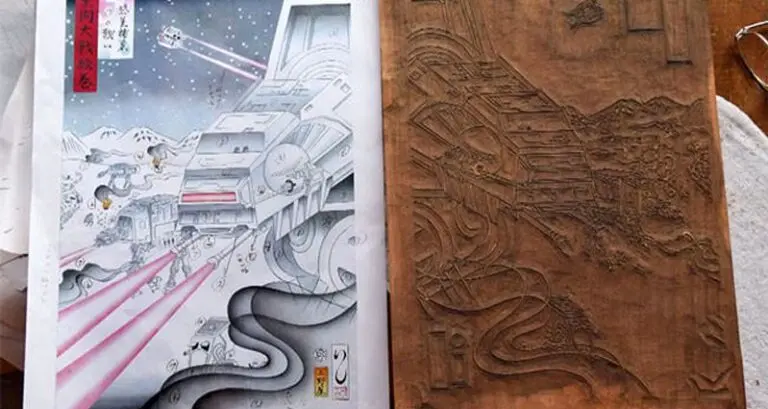 If the 'Star Wars' story had been created a long time ago in a country far, far away (Japan, that is), it might have looked very different. Some master artists and craftsmen from the Rhythm Force project, in collaboration with Lucas Films have reimagined various scenes or characters from the Star Wars universe in the traditional Japanese ukiyo-e style. This is a form of printmaking that has been going on for hundreds of years in Japan, where one artist carves the scene into a wooden block, one paints it and one prints it. Three different ukiyo-e prints have been created, of the Battle of Hoth, Darth Vader, and R2D2, and a very limited run of just 200 prints was made available of one, via Makuake, Japan's answer to Kickstarter. If you head over there, and you're fluent in Japanese, you might just be able to pick one up, but we couldn't say for sure!
