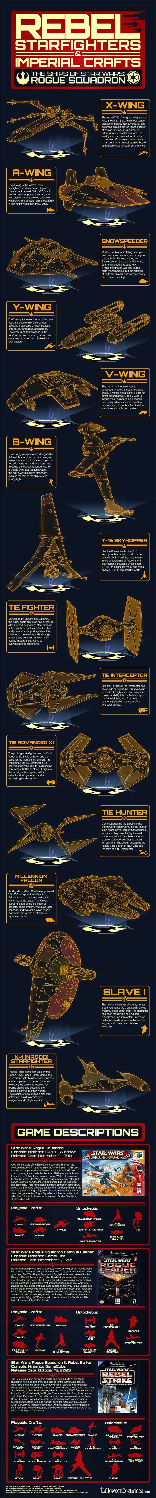 If you're a true 'Star Wars' fan, you'll know that the stories of the Star Wars universe don't stop at the six movies that everyone knows. There are also two cartoon series and a small handful of illustrated and written material that makes up the 'canon', (canon works are those that are accepted as being officially part of the story in the confines of a fictional universe) but there there is still a whole lot more non-canon material in the extended universe. Since the 'Disney' takeover of 'Lucasfilm', this non-canon material has been referred to as 'Legends'. Now, among the most popular legends are the stories told in the 'Rogue Squadron' comics and games. Seeing as the release of the new Star Wars movie is getting closer, we thought we'd pay homage to the ships of the Rogue Squadron series with this awesome infographic from 'HalloweenCostumes.com'! Check it out!
