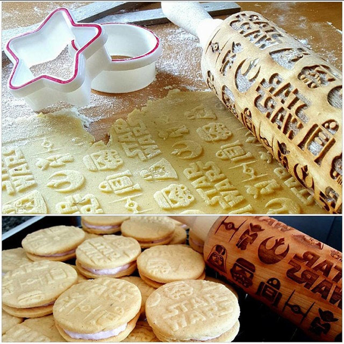 Place the cookie dough on a flat surface. Then flatten it out by firmly rolling the pin over the soft dough. It will leave the embossed parts on the dough to make yummy Star Wars-themed cookies. The highly-defined embossed characters will stay intact even after baking. This unique baking tool is made of beechwood and coated with food oil to prevent the dough from sticking to the pin. It measures 15.75 inches long and 2.36 inches in diameter.