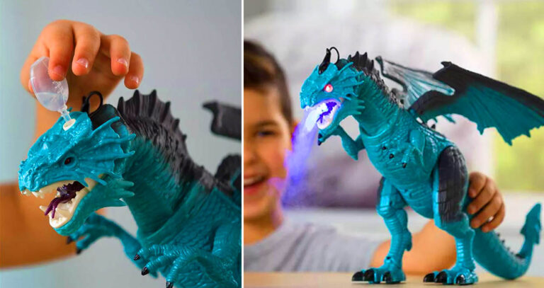 If your kids love dragons, you can make their wildest fantasies come true by giving them this steam-breathing dragon. This cool action figure features a detailed model of a fearsome blue dragon. It comes complete with a formidable pair of wings, back spikes, clawed talons, tail spear, scale detailing and a scary gaping maw. The realistic model is indeed impressive and frightening as it is. But wait till you see its animated features. This moving action figure will surely amaze any dragon lovers, both kids and adult.