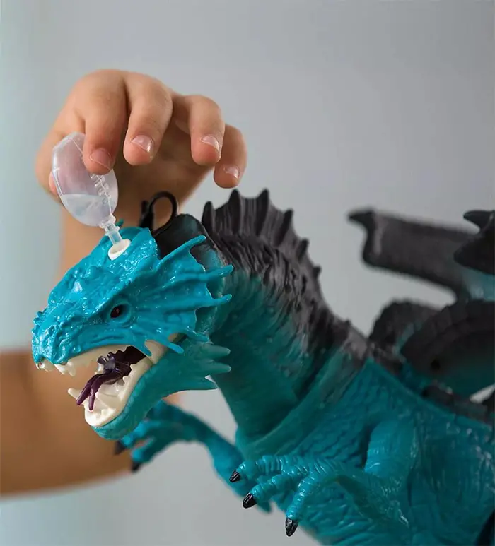 Powered by 3 AA batteries (not included), this dragon snorts cool steam from its mouth as it roars and stomps across the surface. Watch in awe as it flaps its wings with its eyes and mouth lighting up to give it extra scare factor. With just a push of a button, you can get the mystical creature screeching and puffing steam as it prepares to take off on an adventure.