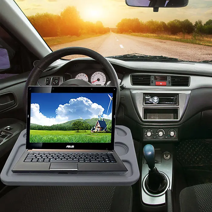 This amazing product can easily attach to the steering wheel and be used as a table. Simply turn the steering wheel upside down and place it on the lower half of the wheel. Then you can instantly use it as a table for your food or as a work surface for your laptop.