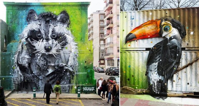 Recently we wrote about the 'Owl Eyes' sculpture of street artist Bordalo Ii here. Since then the artist has created a whole series of sculptures which highlight the issues of waste and pollution. The idea behind this series is to show nature using the same materials which could in time be responsible for its demise. Ii works with discarded items such as tyres, burnt out garbage cans and old appliances. He breathes new life and purpose into these, hoping that people the world over will follow suit and halt the plague of waste which is wrecking our planet.