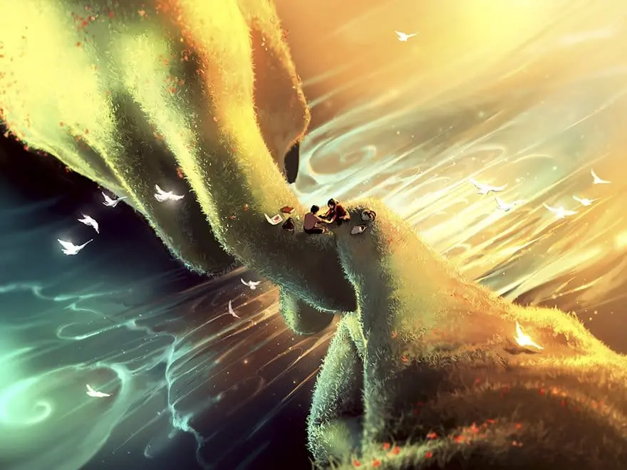 France based artist Cyril Rolando has an incredible talent for digital painting. Cyril (who works under the name AquaSixio) combines both enchanting, vibrant colors with human emotions to create pieces that leave the viewer in awe. Coming under both the fantasy and surreal genres, Cyril’s paintings take you away from the harsh realities of the real world, transporting you to beautiful places you’d much rather be. However, you’ll notice many of the images have sad undertones, so take your time looking through to really appreciate the meanings behind them! And, don’t forget to check out part 2 of this post series!