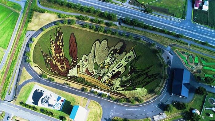 Tourists are looking forward to what the rice paddy art will exhibit every year. Although the village is mostly featuring Japanese folklores, they also feature other foreign figures. These figures include Napoleon (2009), Marilyn Monroe (2013), Star Wars (2015), and Gone with the Wind (2015). But probably the most elaborate drawings that we’ve seen so far are these 2017 depictions of Momotaro and Yamata no Orochi vs Susanoo-no-Mikoto.