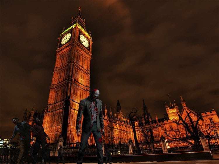 'The Zombie Apocalypse' is a concept that sees the world overrun and half destroyed by an infestation of the living dead, it's become a popular theme in modern art. The creative folks at outfit 'Designcrowd' have taken this theme and created the below series of spooky images. In them, the artists imagine what various world landmarks would look like following a zombie apocalypse. The results are eerily terrifying! Take a look!