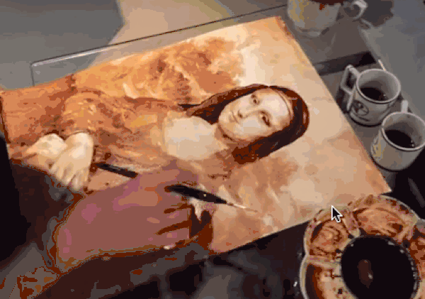 Cake designer, commercial artist and illustrator Maria A. Aristidou has used espresso and Greek coffee to create a copy of La Gioconda (Mona Lisa) by Leonardo da Vinci. This may sound pretty odd but painting with coffee really works! Maria brewed various different strengths of coffee to create the many shades she needed and we think her take on the famous masterpiece is amazing! Take a look!