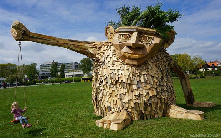 Copenhagen-based Danish artist Thomas Dambo creates huge and quirky sculptures from wood and materials he finds around his home town. Believe it or not, Dambo says that there is so much scrap wood all over his city that he has plenty to work with to create his sculptures. He hopes he will inspire others to recycle and to reuse old stuff. Check out some of the artist's amazing pieces and also the link to his website below!
