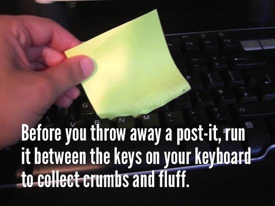 Clean your keyboard like the lazy pro you are! Use a Post It Note!