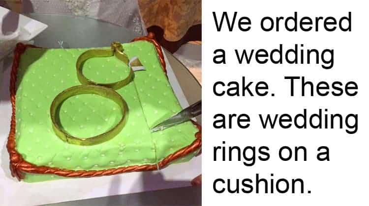 “We ordered a wedding cake. These are wedding rings on a cushion.”