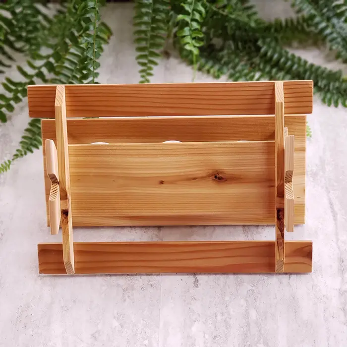 Measuring 13″ long, 9″ wide, and 4″ high, it features 3 slots with a diameter of 3″ each. The holes can fit standard condiment squeeze bottles, 9-ounce snack cups, soda cans, as well as beer bottles. Aside from using it to hold condiments and serve munchies, you can also use it to display your plant pots. Every purchase also comes with a choice of 3 free acrylic cups, terracotta pots, or plastic tricolor flower pots.