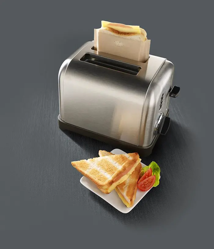 Creatively dubbed as Toastabags, these ingenious toaster-safe packets are sold by kitchenware company Boska Holland. They feature a woven fiberglass material with a polytetrafluoroethylene (PTFE) coating, making them resistant to high temperatures. Packed with excellent nonstick properties, Toastabags offer a no-mess and convenient way of making grilled cheese sandwiches directly in your toaster.