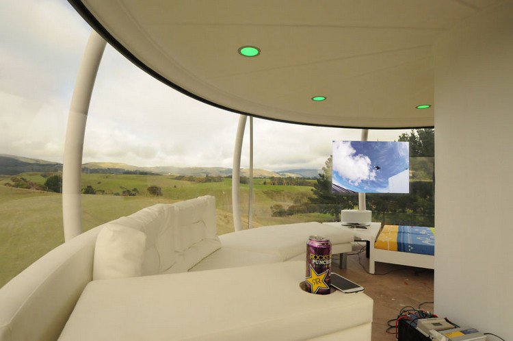 Built and designed by Jono Williams, the Skysphere is his own awesome man cave, where he loves to relax and drink beer from the built in motorized beer dispenser! The Skysphere is completely solar powered and boasts two couches, a queen sized bed and a sound system. We want one!!!