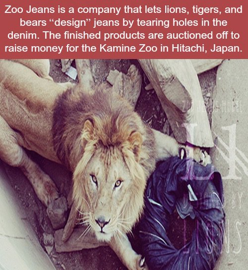 It’s human nature that we are curious creatures. Many of us find things we deem ‘unusual’ to be fascinating. Below we have some interesting facts that fall into this category! For example, were you aware you could buy salt made from actual human tears? Or, that there is a company called ‘Zoo Jeans’ that allows animals such as lions and bears to claw into the denim, creating a unique design that is then auctioned off to raise money? Take a look!