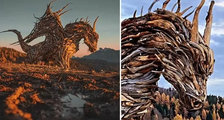 The Vaia Dragon Is Sculpted Using 2000 Pieces Of Wood From Fallen Trees