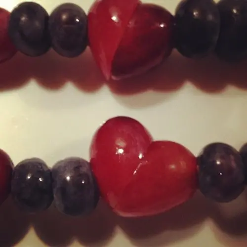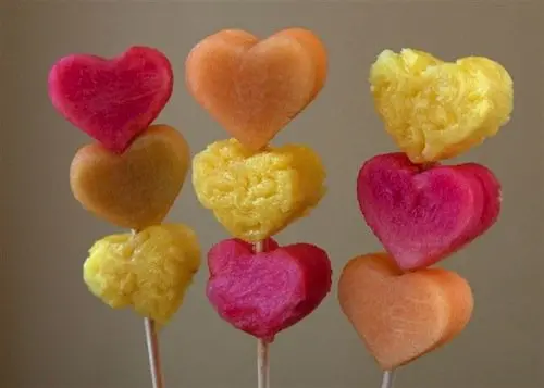 Fruit shaped into hearts and placed on a stick is fruit everybody loves.
