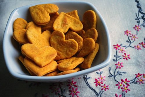 Yum. Sweet potato cracker hearts are a delicious savory treat for both young and old. Instructions here.