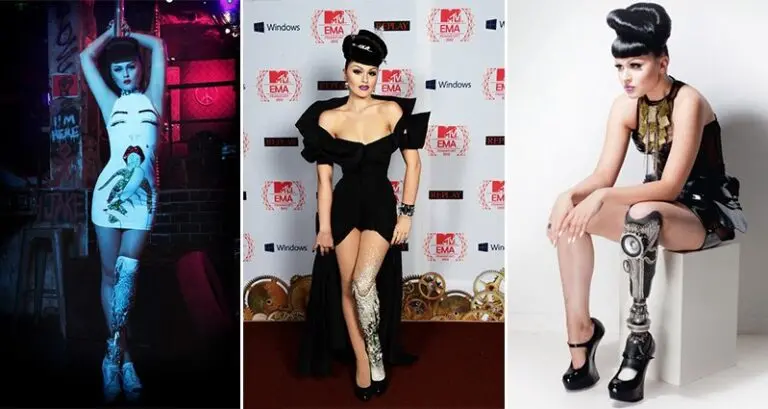 Born with a dislocated leg and hip and enduring 15 failed surgeries in her home country, Modesta moved to London where she convinced doctors that amputating her leg was right for her, and has not looked back since! Check out her video below and let us know what you think of her striking look in the comments.