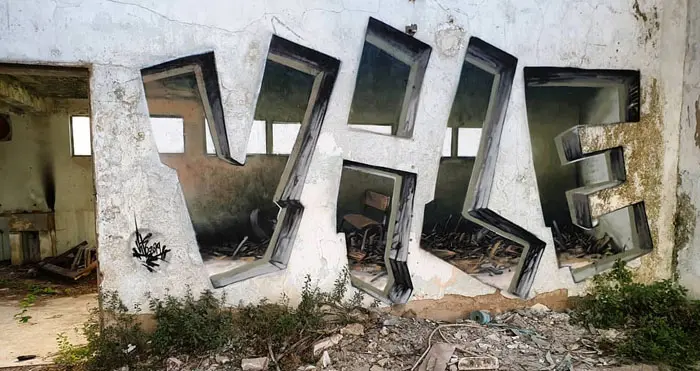 Vile often portrays his street art illusions on the exterior walls of abandoned buildings