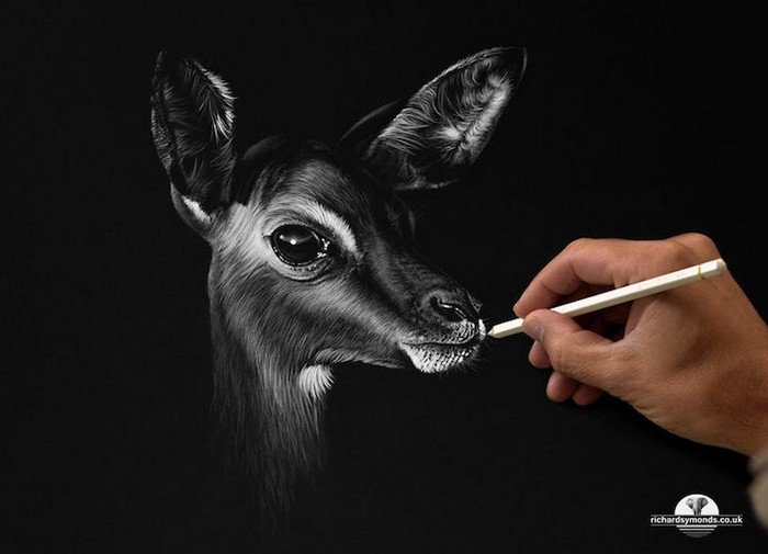 These incredible portraits of wild animals were created by entirely self-taught artist, Richard Symonds. Richard cares deeply about the wildlife he draws and paints, and it shows through his work! The artist has the incredible ability to capture the essence of every animal he draws. It's almost as though the works of art themselves are alive! Take a look! You won't believe how lifelike these artworks are!