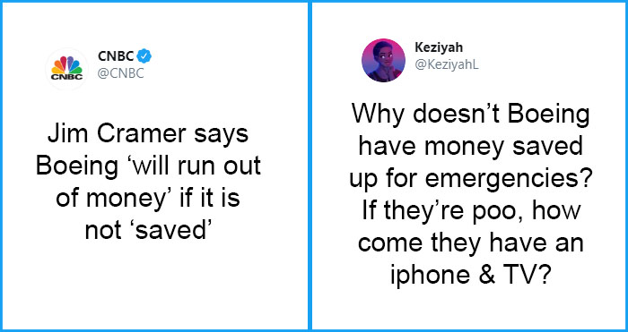 Why doesn’t Boeing have money saved up for emergencies? If they’re poor, how come they have an iPhone & TV? Maybe they should get another job. Or just work harder. Drive for Uber on the side. Stop wasting money on Doordash. Not our fault they chose a major that doesn’t pay well https://t.co/ScyYooihSy