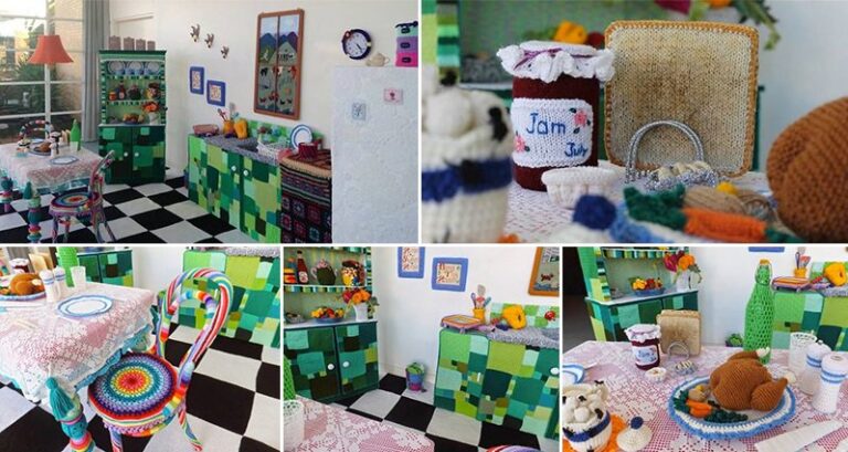 With all the simmering and roasting that goes on, kitchens are often one of the warmest rooms of the house, but this kitchen could be the coziest one ever, and it doesn't even have a working oven! This snuggly kitchen has a twist. Everything in it is either covered in, or made out of yarn. That's right, this is a knitted kitchen! The room was created by 50 artists as part of the "Jazz and Jumpers" festival that takes part at Warwick Art Gallery in Queensland, Australia.