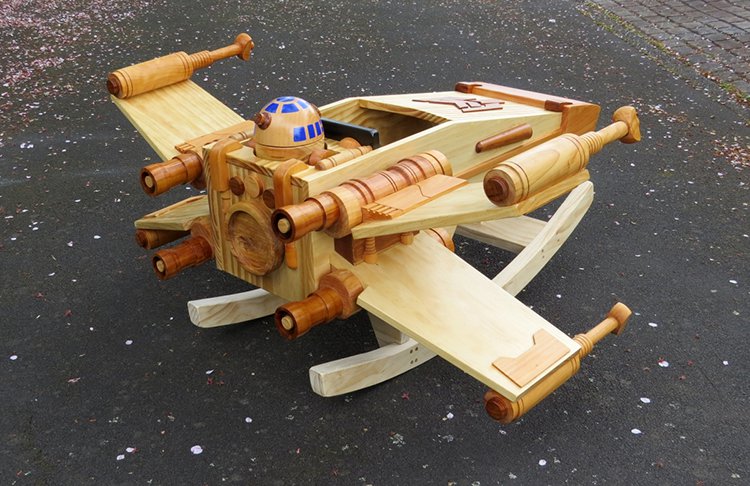 If you're a fan of the Star Wars movies you are going to love what New Zealand based Steve from Steves Wooden Toys has come up with. A ride-on rocker that looks just like an X-Wing Starfighter! Not only that but it comes with its own cool little wooden R2-D2 that fits right inside. Awesome! Take a look at the photos below and prepare to be totally blown away.