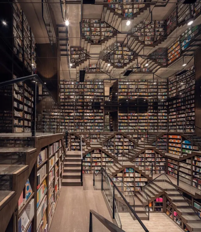 Zhongshuge Boosktore interior design features optical illusion of confusing interconnection of staircases